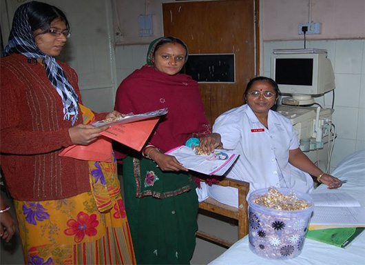 Distributing small food packets to women, children and old age patients waiting of USG turn.